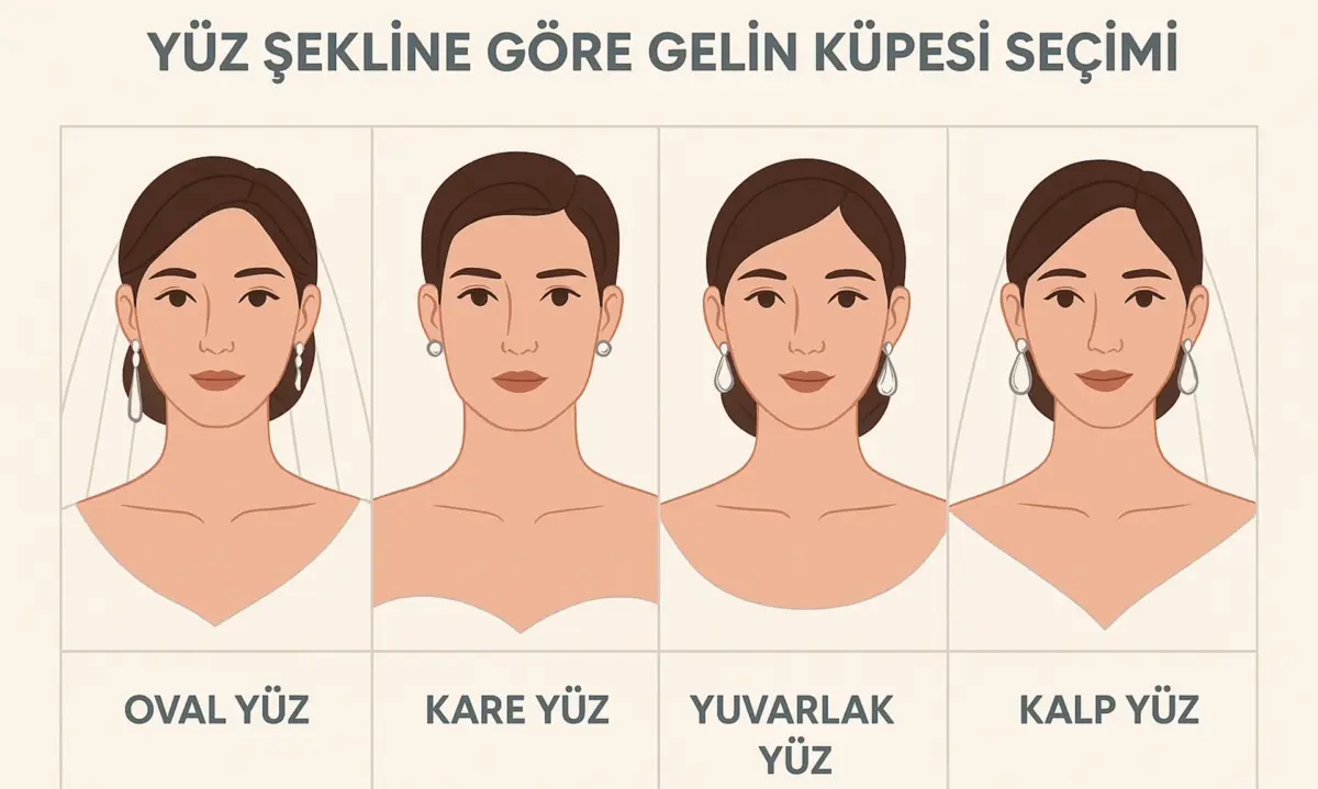 Yüz hatları belirleyici bir faktördür. Örneğin, ince yüz hatlarına sahip bir gelin uzun ve sallantılı modellerle zarif bir görünüm yakalayabilirken, yuvarlak yüzlü gelinler daha keskin ve minimal tasarımlar tercih etmelidir.
