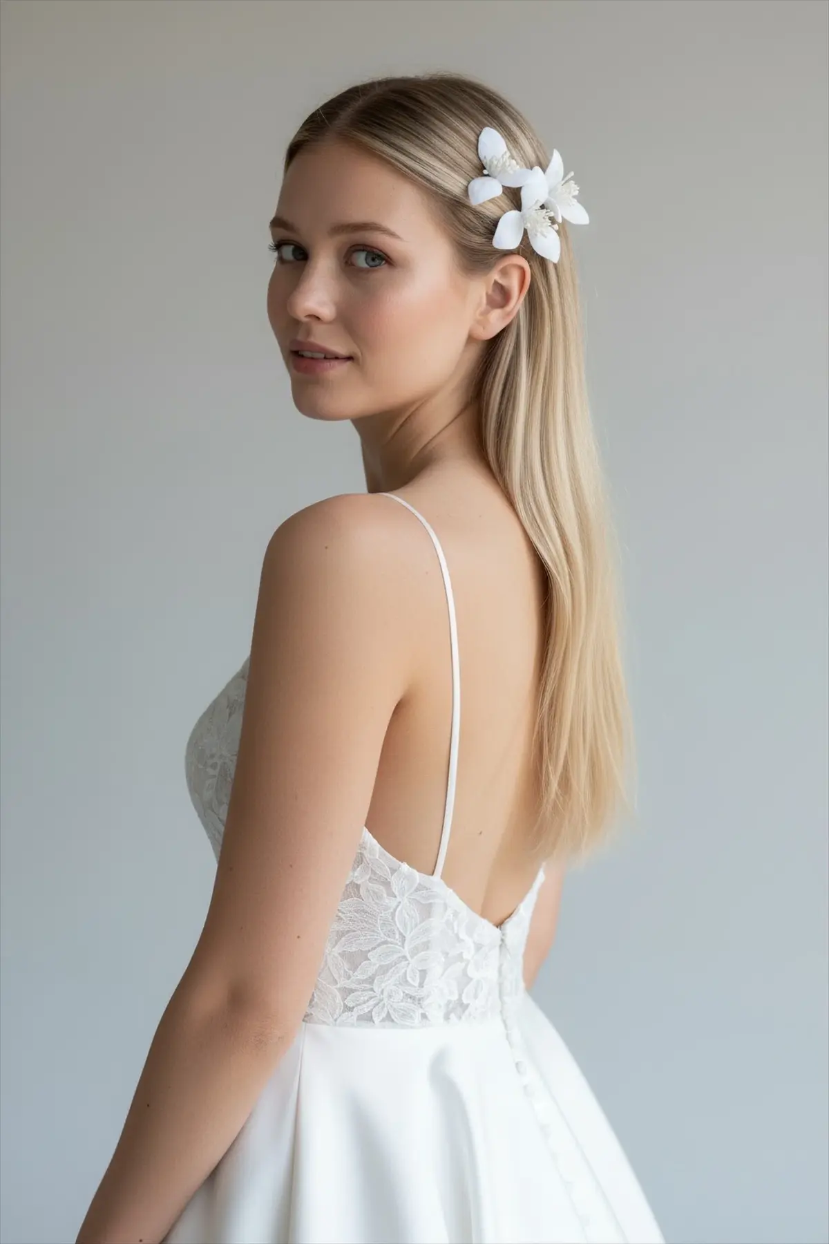 El yapımı kumaş çiçek gelin topuz tokası, zarafetiyle özel gününüzde fark yaratır.